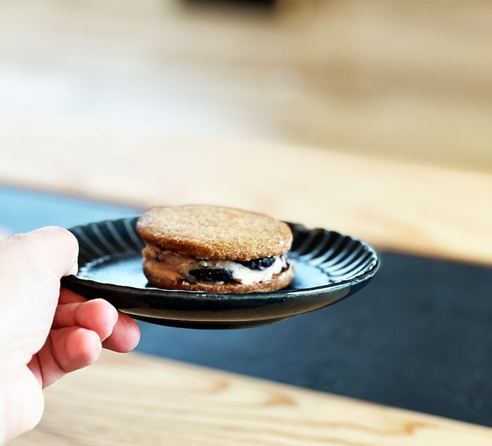 アメリカンチェリーをバタークリームにたっぷり練り込み、バタースコッチクッキーで挟みました。今だけの美味しさです!