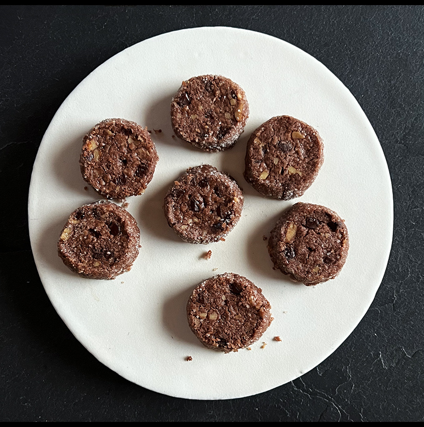 原材料 小麦粉【小麦(埼玉県産)】、無塩バター、アーモンドパウダー、砂糖(甜菜)、有機くるみ、有機ココアパウダー、有機チョコチップ、岩塩、(一部に小麦、乳成分、くるみを含む)
